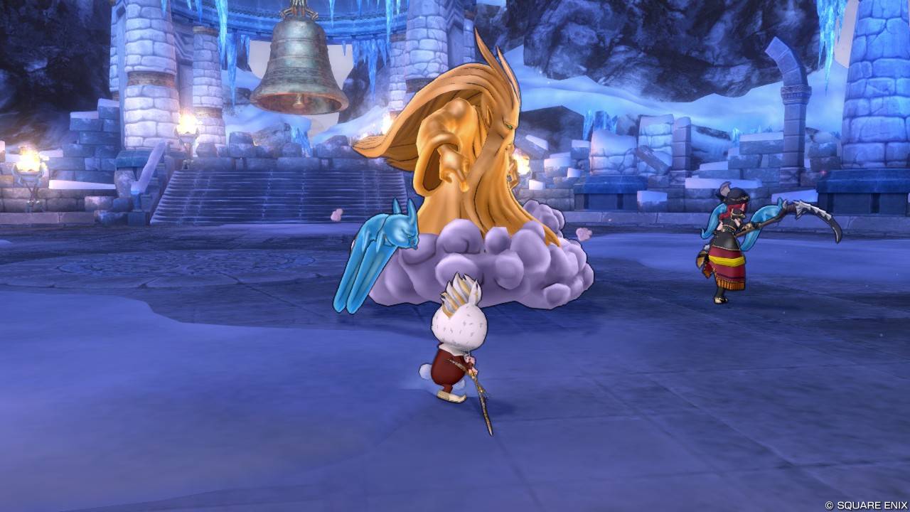 攻撃に関しては名前からもわかるように風属性や雷属性の行動が多め。「バギムーチョ」「ジゴデイン」「しんくうは」「真空衝」をぶっぱなしてきます。ヘルクラウダーの周囲にダメージとマヒ効果がある「はげしいいなずま」、発動後一定時間たつと雷エフェクト上に、いてつくはどう+ダメージを与える「いてつく雷鳴」も要注意。近距離で戦う職業だと避けづらいぞ。風・雷の攻撃が多いのでアクセに「風雷のいんろう」を装備しておくと多少楽かも。