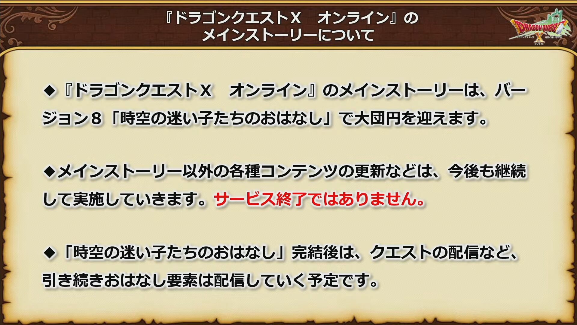 我らが「ドラゴンクエストX」が、バージョン8をもってメインストーリーが「大団円」を迎え、完結することが明らかに!