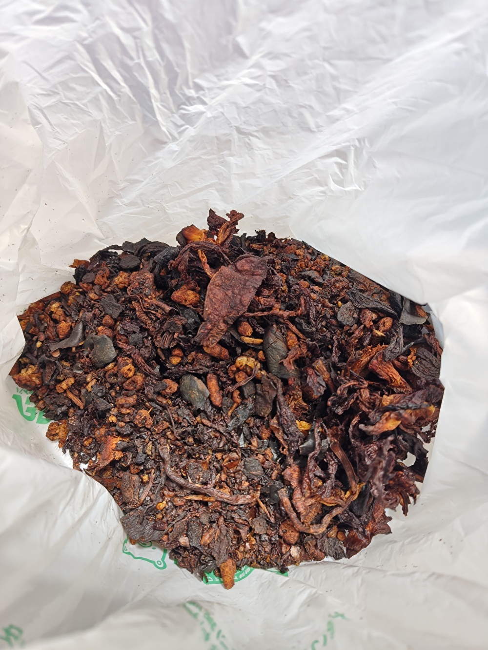 全部カピカピになってるやんけ!元の姿が何だったのかわからないレベル。カサもずいぶん減ってるし、まだまだ投入し続けられるな。もっと生ごみを処理したい。( ∩ ͡° ͜ʖ ͡° ∩)